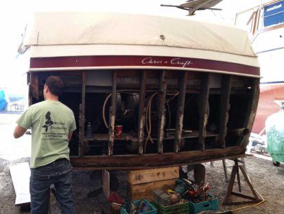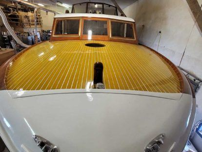 Gallery of WorkScroll to Content Browse some of our most recent refinishing, repairs and rebuild projects Our Work "GRACE" 1958 MatthewsSummer 2022 - Grace, a classic Matthews mahogany yacht is in for an extensive restoration.Arena Craft?This boat is a mystery boat. We are not 100% sure this is an authentic Arena Craft…1949 22’ ShepherdThis boat has come in for a 5200 bottom, and complete topsides and deck restoration.“Stone Crusher”Stone Crusher is a 19’ Gravette and is owned by a grandson of the founder of Gravette Boats in Muskoka Ontario.Queen Esther1928 Chris Craft Triple Cockpit RestorationCentury Resorter 5200 bottom2010Chris Craft Cadet2011Chris Craft Cruiser2015Peterborough Canoe201523′ Shepherd – Touch WoodTouch Wood is one of the boats we’ve completely rebuilt and regularly maintain.1963 Chris Craft Cruiser1963 34′ CHRIS CRAFT CONSTELLATION HARD TOPElco Tenango1930 42′ ELCO FLAT TOP“SKIPPER” 32′ custom – New buildSkipper is a new build replica of a 1950’s Norse.Trojan “Miss Tique”Miss Tique” is a 1972 TROJAN with fiberglass hull and wood cabin.Swim Platform RestorationNo job is too small to consider our services for.Custom Steering WheelWe have been commissioned to build a custom wood steering wheel.Sold: NEMESIS – 1940 33′ Chris Craft Sedan CruiserNemesis came in with transom and cabin deterioration issues.Gren-EllThis beauty arrived in September of 2018.Sold: 16′ Late 50’s Shepherd. “Scrounger”Scrounger came to us from Montreal for a complete restoration.“ECCLESIA” – 1953 Chris Craft DCFBECCLESIA is truely a classic cruiser. She is a BIG boat!Load more(Now showing 20 of 20) We are available for any questions, requests or estimates for all of your wooden boat needs. Contact Us Today!